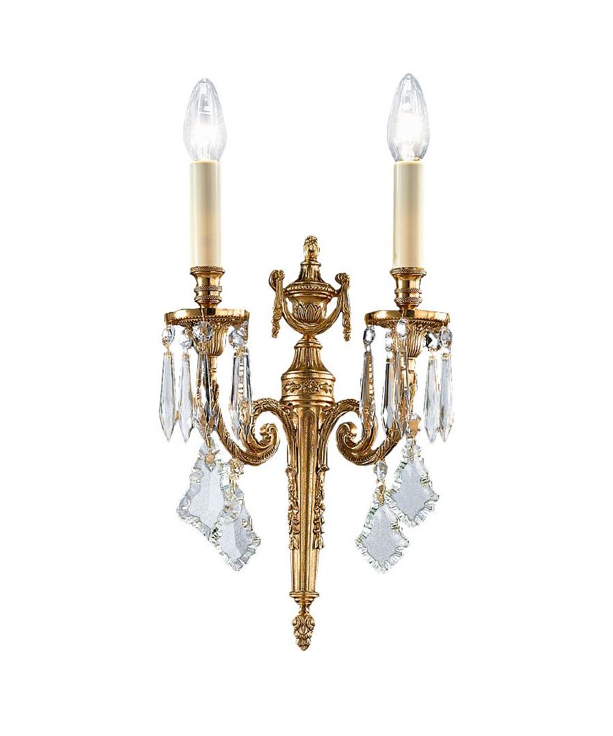 A stunning 2-light sconce in Antique French Gold with clear crystal droplets. Droplets are also available in smoke or mixed crystal. Please note: Other finishes are available upon request.