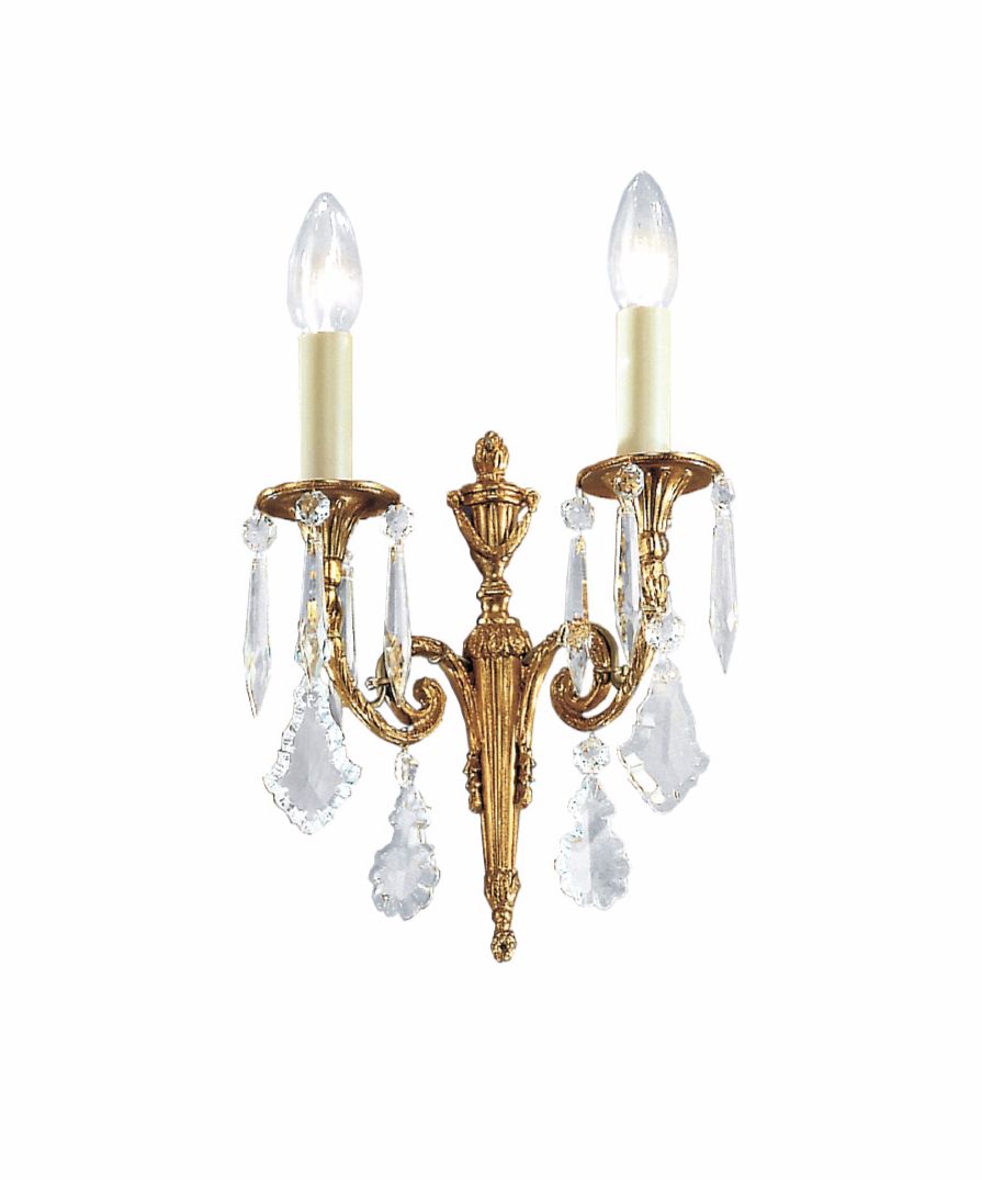 A stunning 2-light sconce in Antique French Gold with clear crystal droplets. Droplets are also available in smoke or mixed crystal. Please note: Other finishes are available upon request.