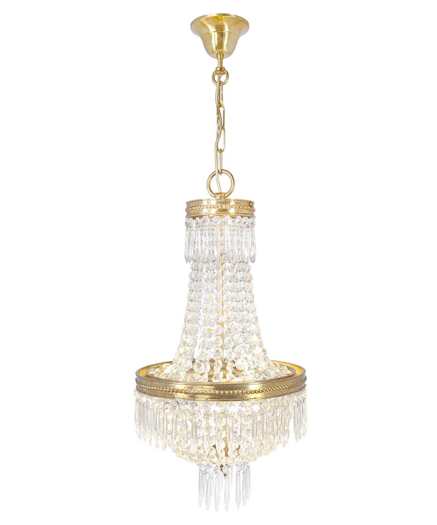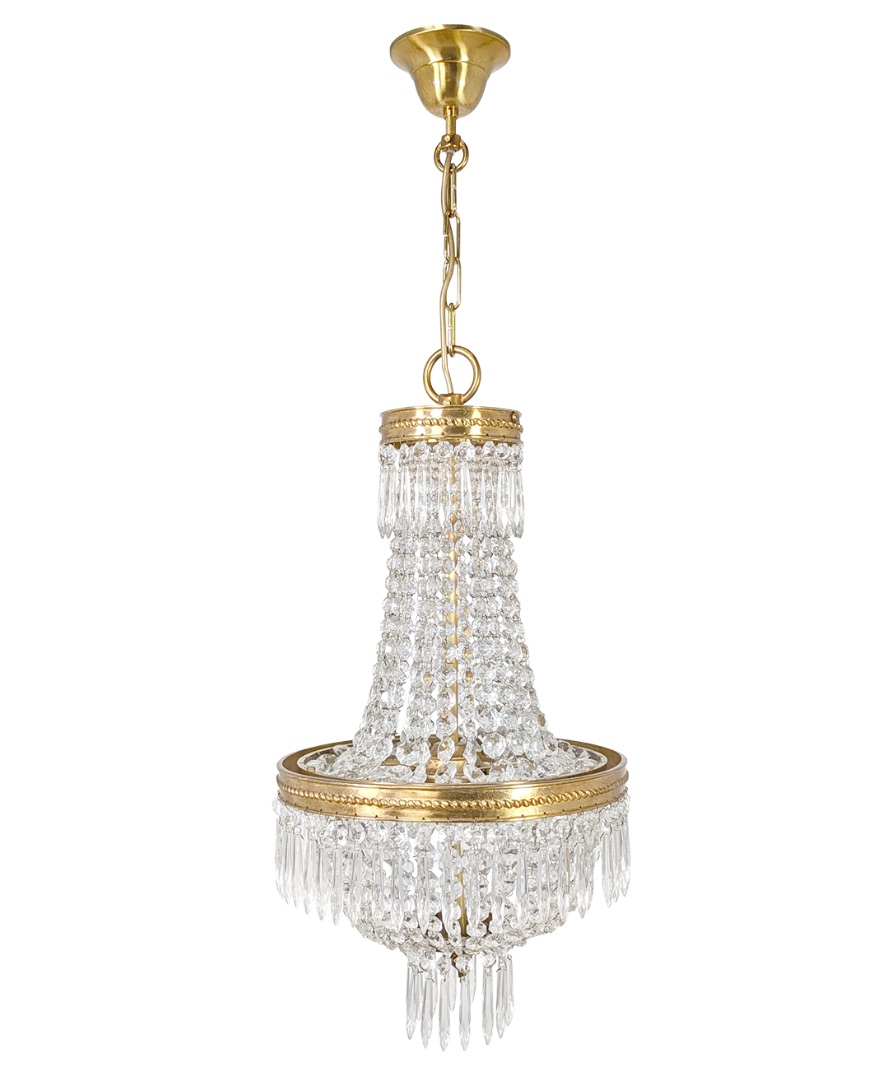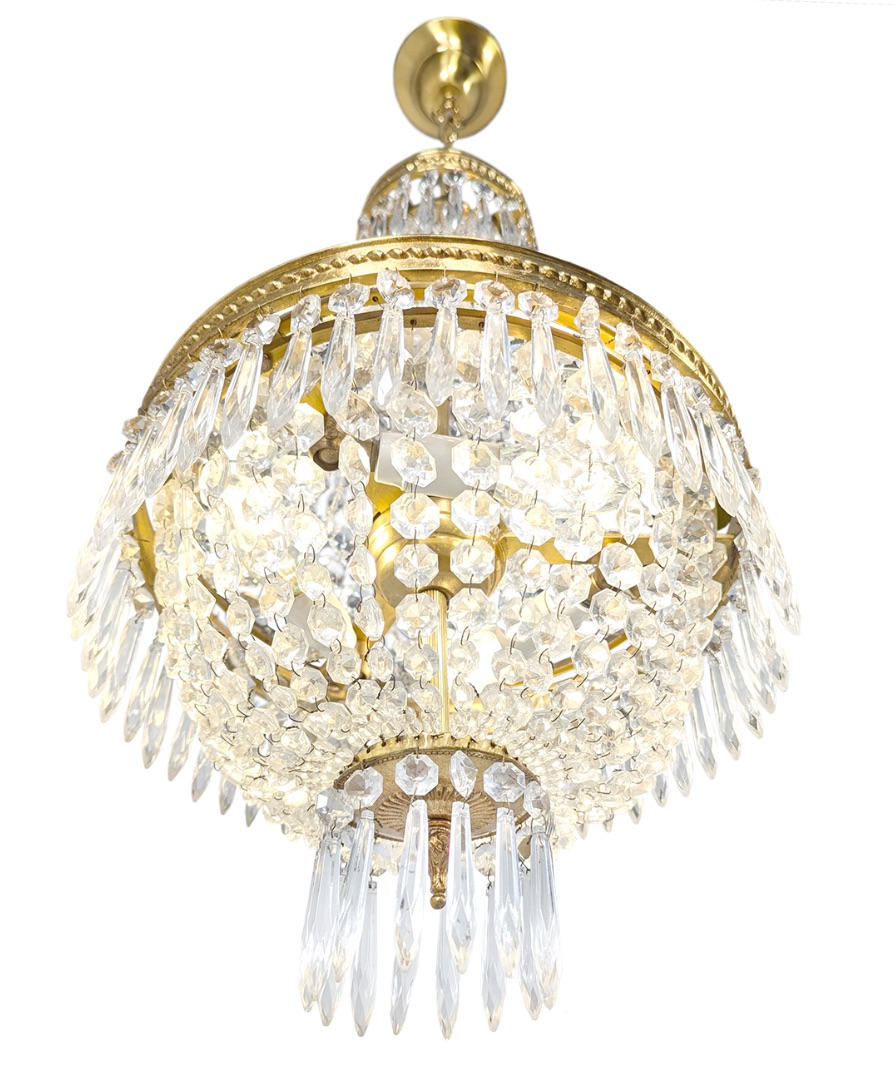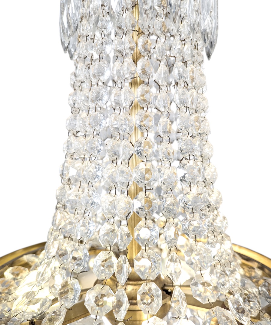 This elegant crystal chandelier is shown here in a french gold finish. Please note: Other finish options are available on request.