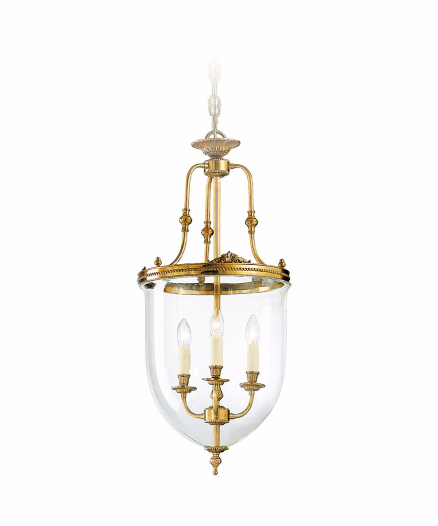 The design of these lanterns is based on classical 18th Century safety lanterns which had candles suspended over water in the glass. Cast brass metal work finished in antique french gold.