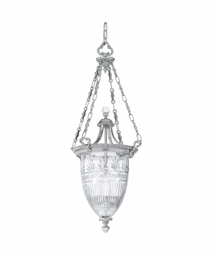 A large cut crystal lantern on a cast brass frame. Finished in satin chrome.