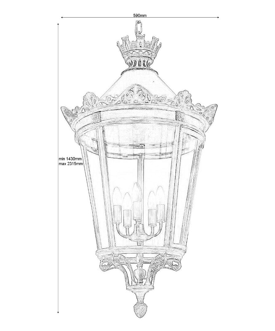 An impressive lantern finished in antique brass, without lacquer to allow natural darkening with time.