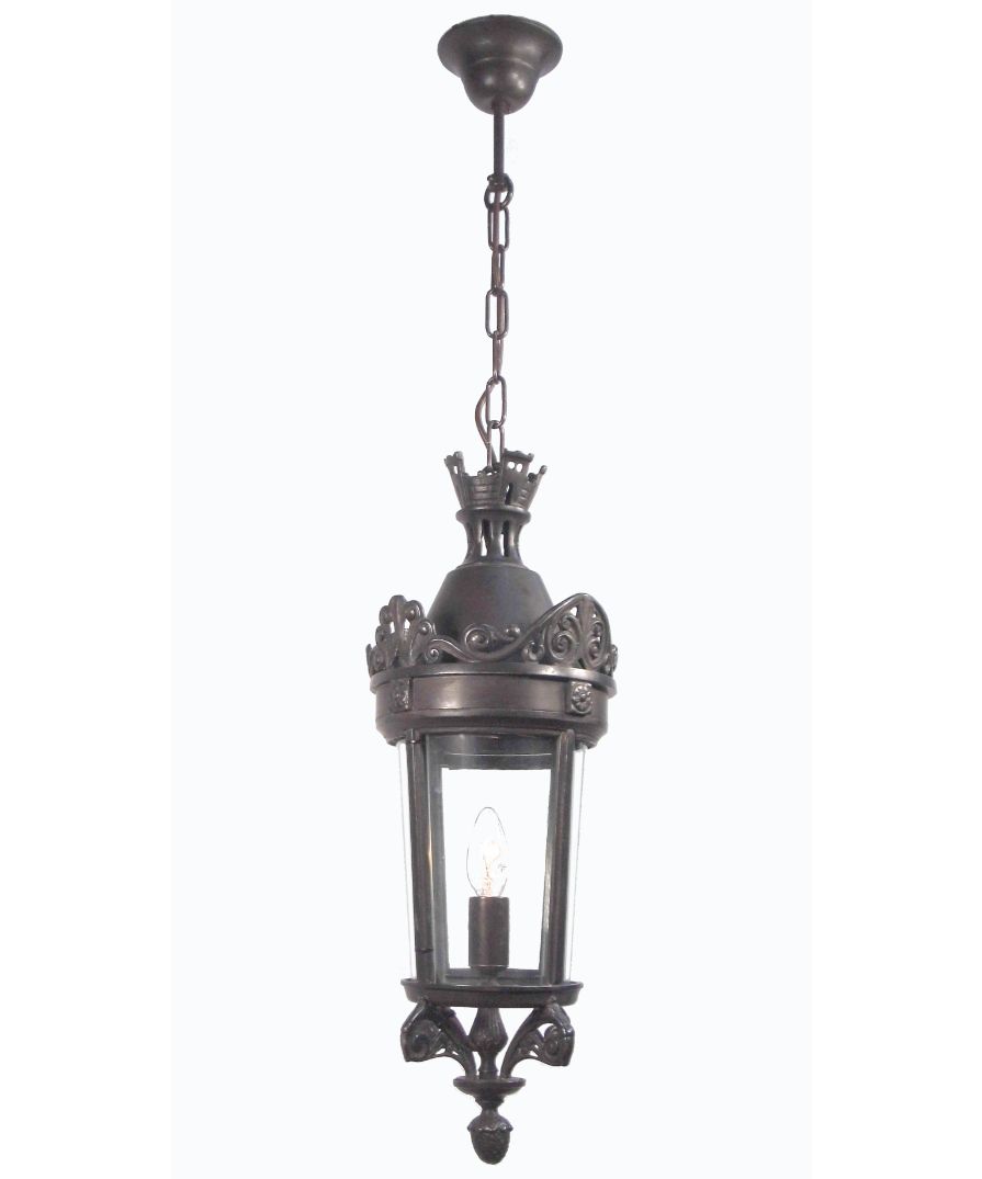 A unique exterior lantern is finished in a matte dark bronze finish. *Only 1 left in stock