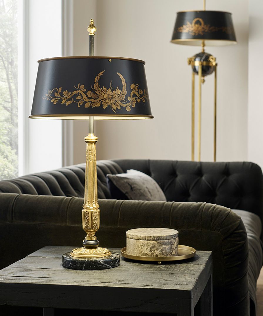 Cast brass finished in antique french gold. Complete with hand painted metal shade.