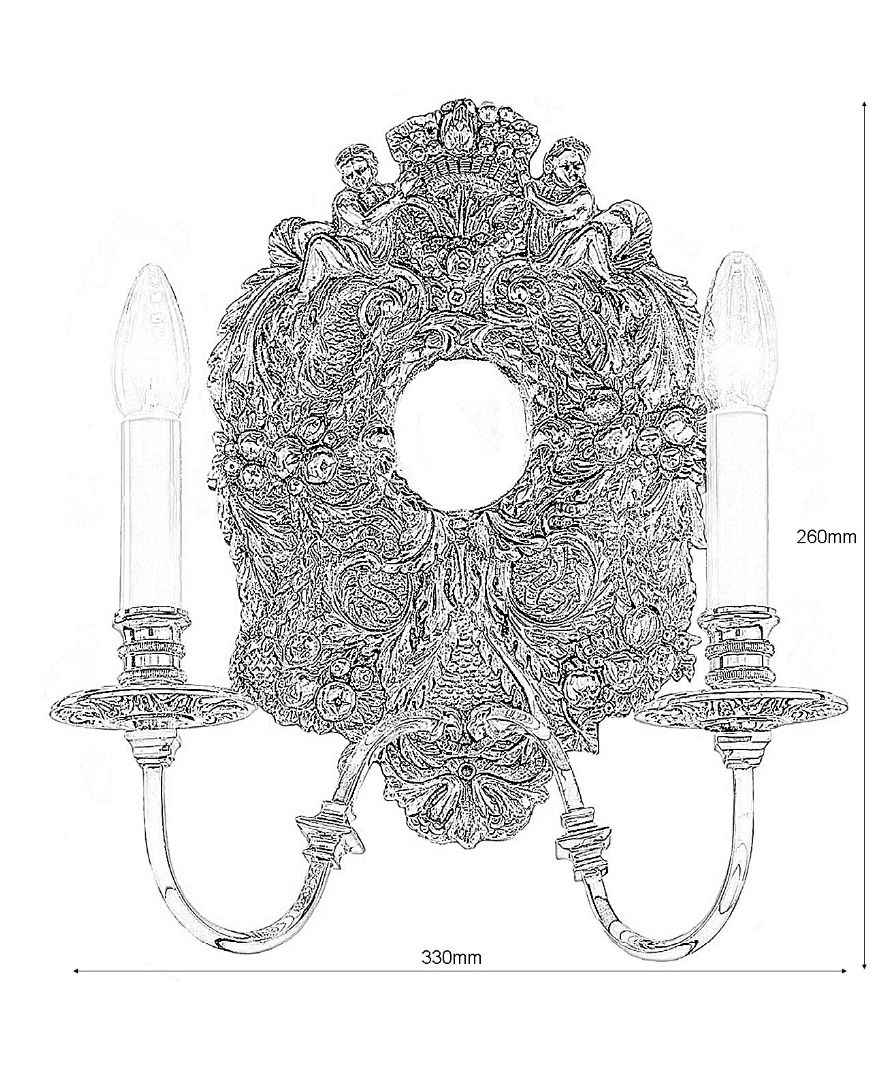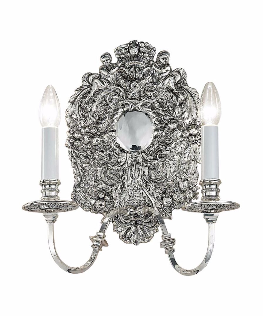 An ornate wall light featuring a beautifully detailed antique silver backplate with floral and scroll motifs. Please note: Other finishes are available upon request.