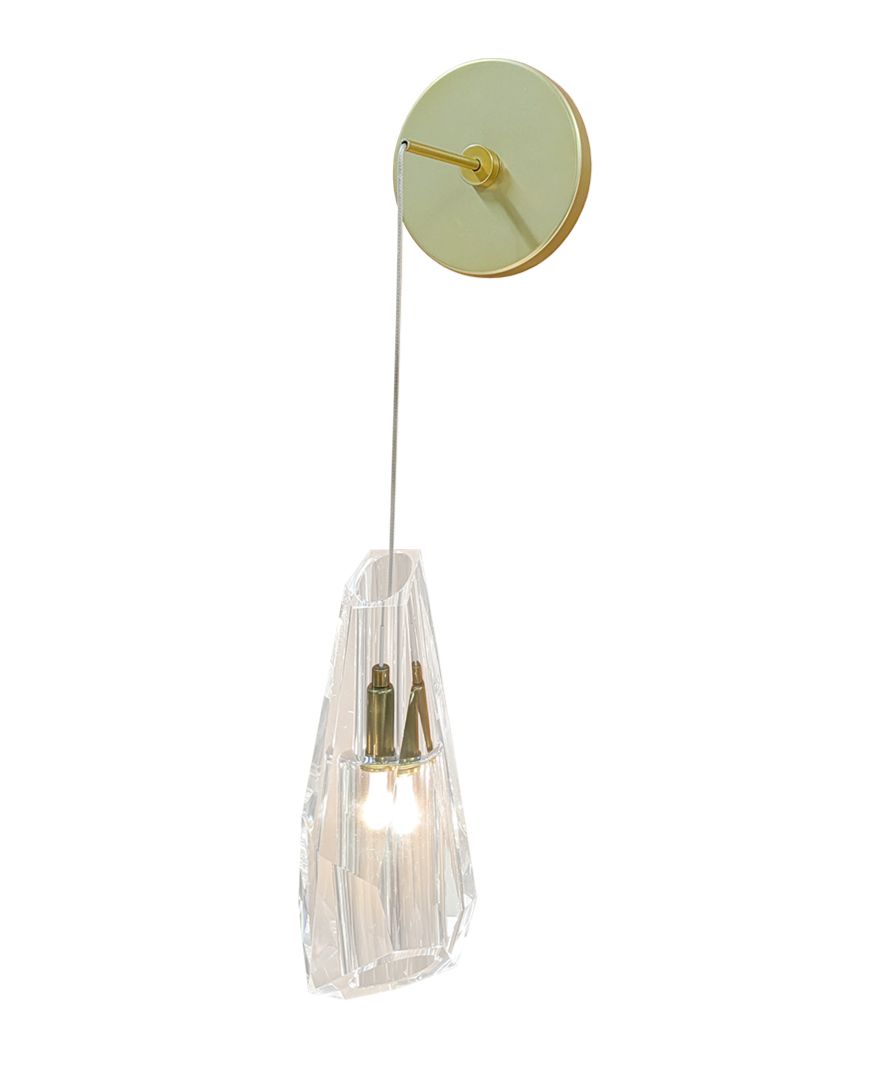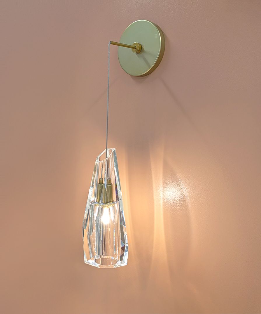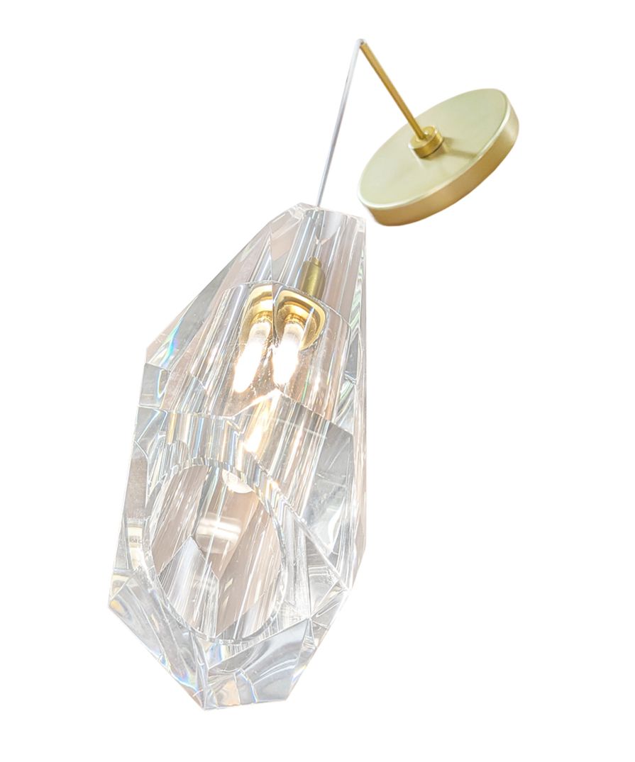 Our latest addition to the Prism Family - the Prism wall light blends modern luxury with artistic form, showcasing a singular hand-cut polished crystal suspended from a fitting in our modern brass finish. Please Note: Other finish options available on request.