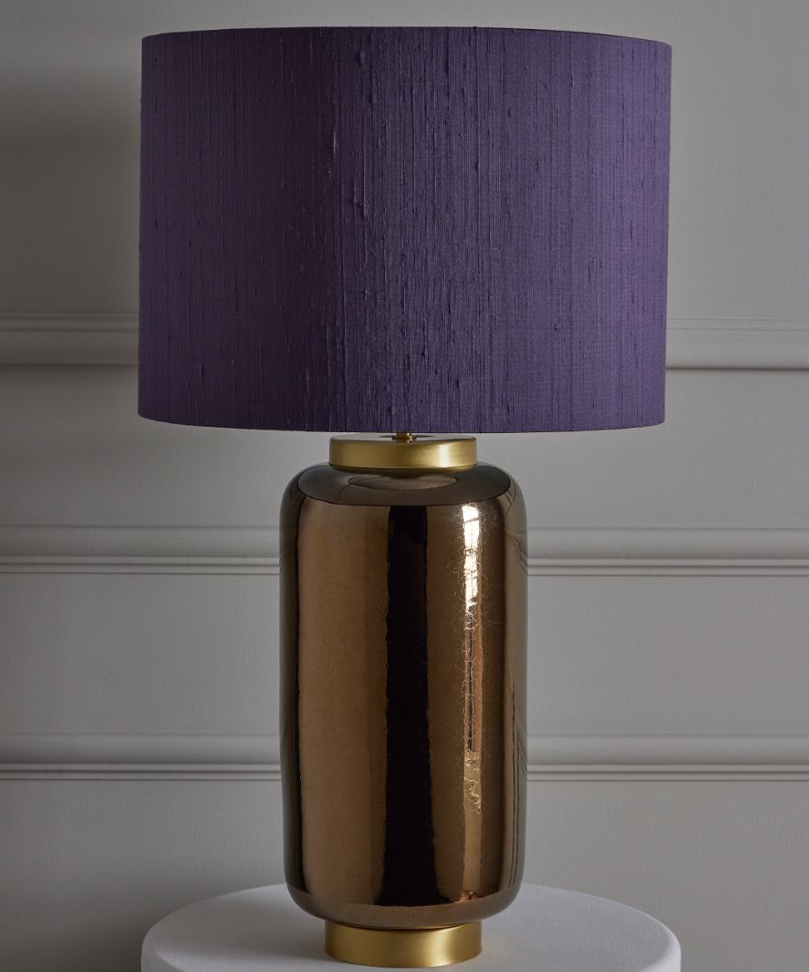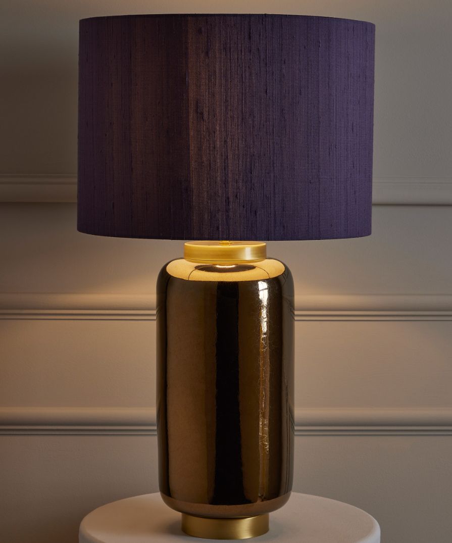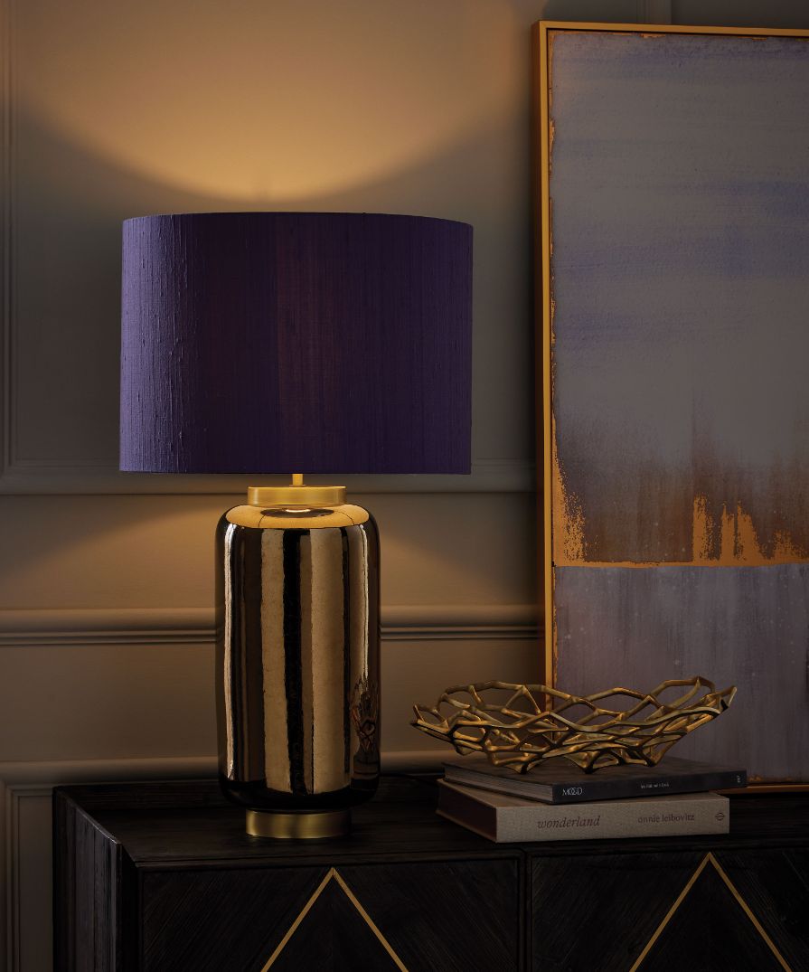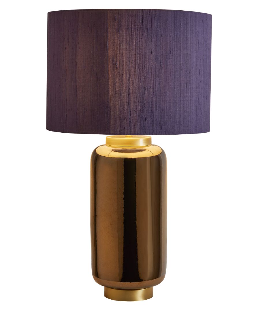 Artemis Table Lamp – Ceramic base with an anthracite metallic textured lustre; variations may occur during firing. Satin gold base and lamp holder finish. Please Note: Lamp shade not included.