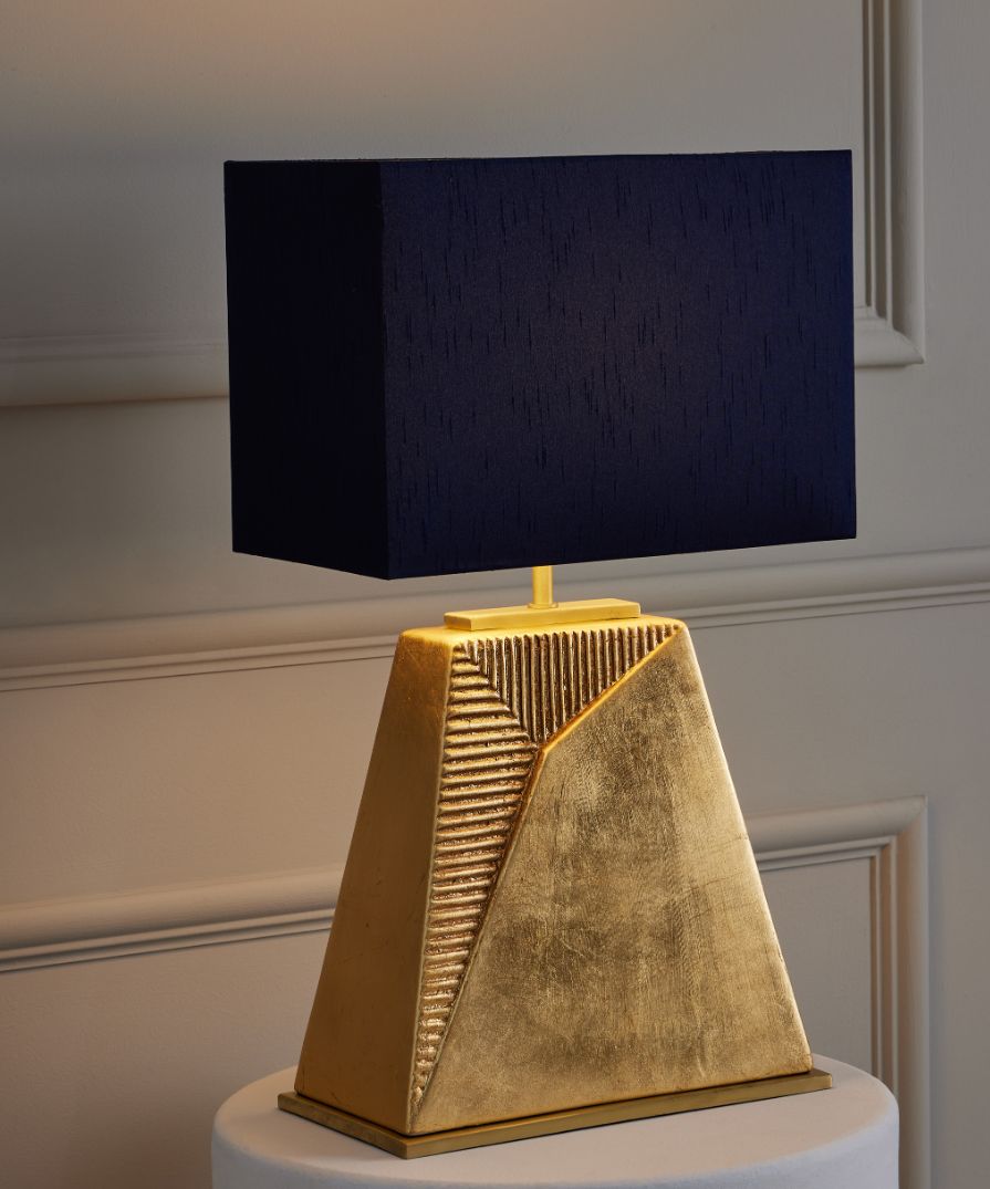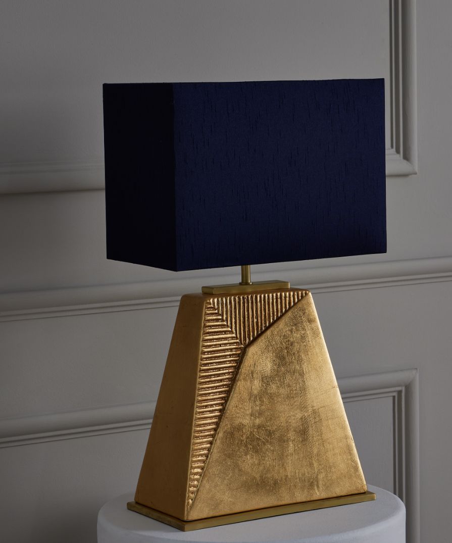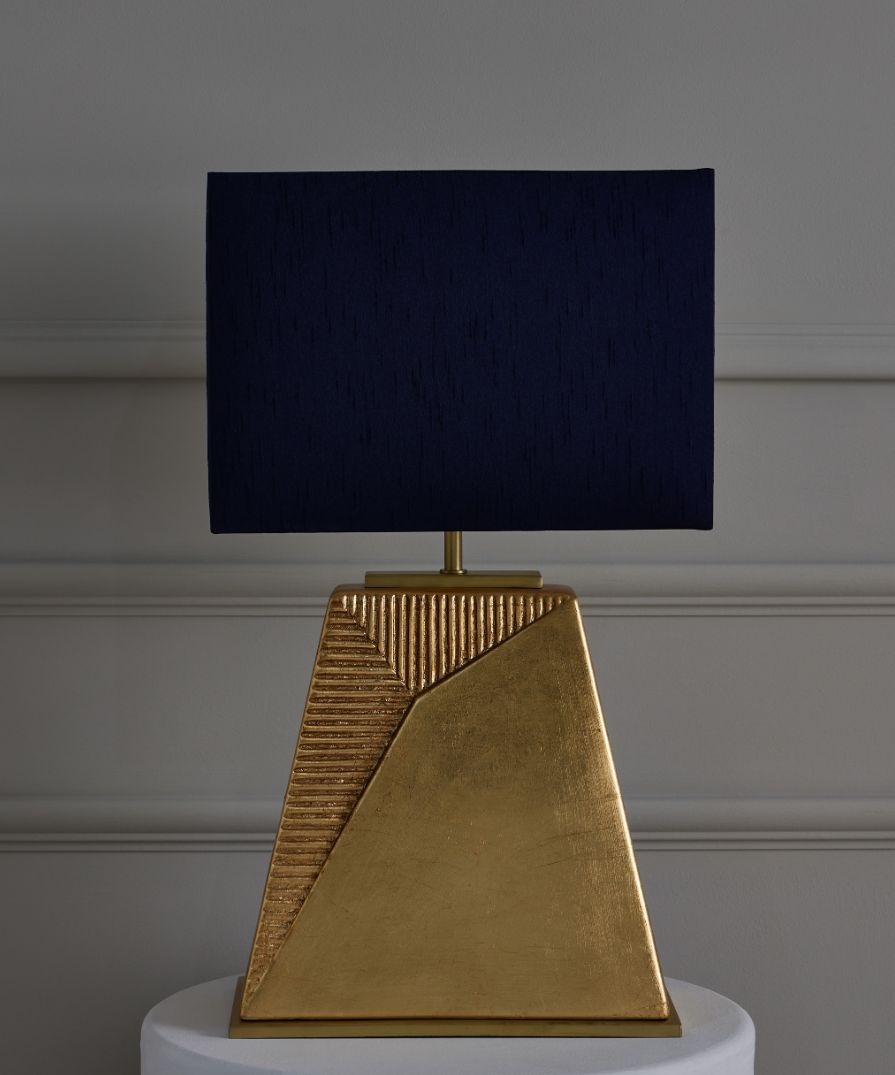 A stunning statement table lamp crafted from ceramic with a gold leaf finish and a satin gold base. Also available in a blue glaze finish. Please Note: Lamp shade not included.