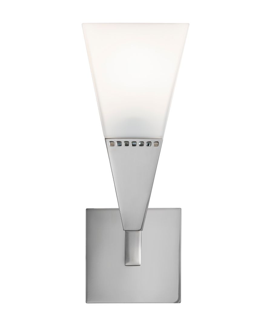 A sleek and modern wall sconce featuring a tapered frosted glass shade and a polished nickel base. Naples is perfect for adding soft, ambient lighting to spaces. Please Note: Other finish options are available on request.