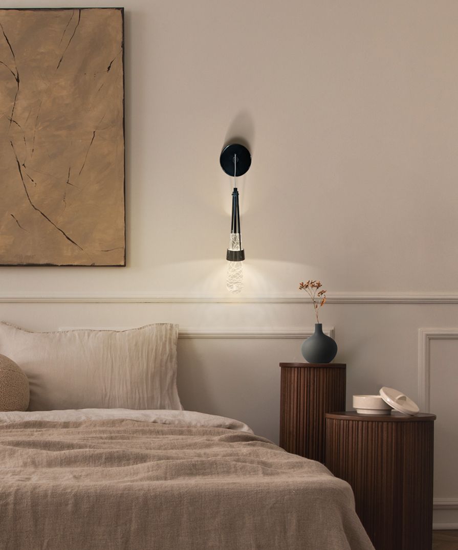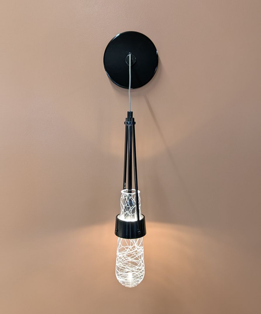 The Rain Wall Light showcases our uniquely detailed glass held up in our metal structure available in various finishes. Please Note: Available in other finishes.